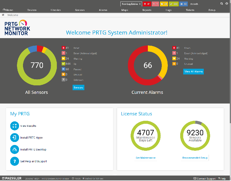 PRTG Enterprise Monitor s'adapte aux infrastructures IT étendues, composées de milliers d'appareils et de systèmes répartis sur plusieurs sites géographiques. Il permet facilement de gagner en visibilité et de contrôler des infrastructures de plus en plus complexes.